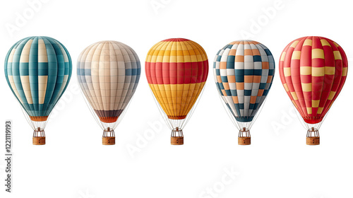 Fototapeta premium Colorful Hot Air Balloons: A captivating view of vibrant hot air balloons, each adorned with unique patterns and colors, ready to take flight and paint the sky with joy.