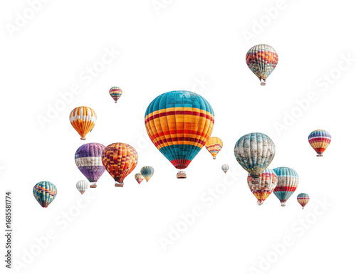© zarfan, Obraz premium Colorful hot air balloons against a dark background