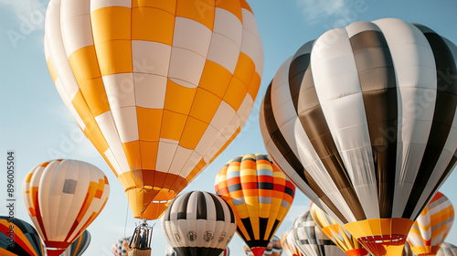 Obraz premium Colorful Hot Air Balloons Against Blue Sky