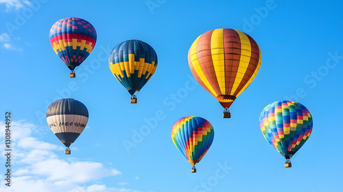 © Eko, Obraz premium Colorful Hot Air Balloons Floating Against A Bright Blue Sky