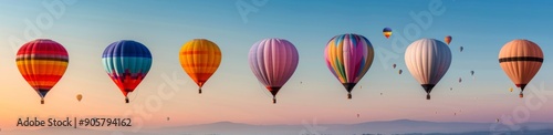 Fototapeta premium Colorful Hot Air Balloons Floating in a Clear Blue Sky at Sunrise