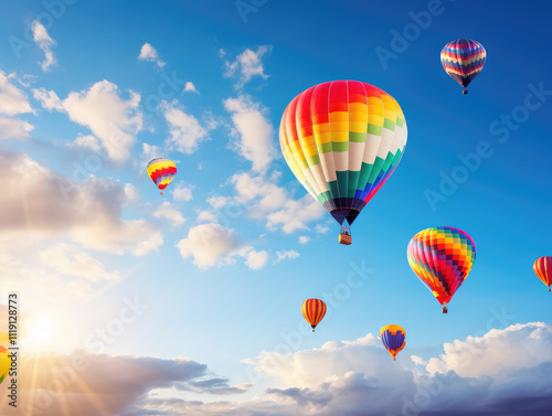 Fototapeta premium Colorful Hot Air Balloons Floating in Sunny Skies