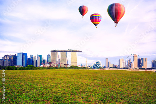 © krunja, Fototapeta premium Colorful hot-air balloons flying over the park at singapore