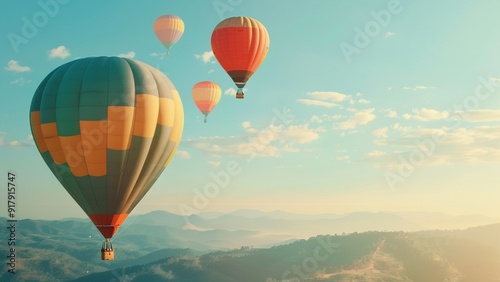 © arjan_ard_studio, Obraz premium colorful hot air balloons in a clear sky
