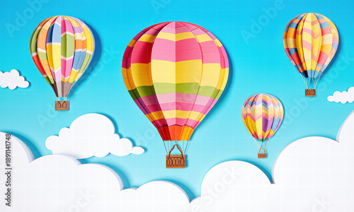 © SujitraDragon, Fototapeta premium Colorful Hot Air Balloons in a Sky Background