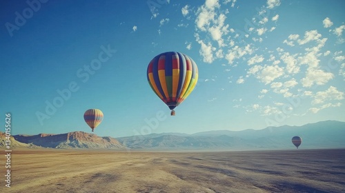 © mukti, Obraz premium Colorful hot air balloons over desert landscape (1)