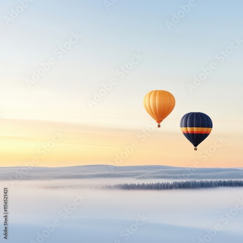© Sangsung, Fototapeta premium Colorful Hot Air Balloons Over Serene Winter Landscape