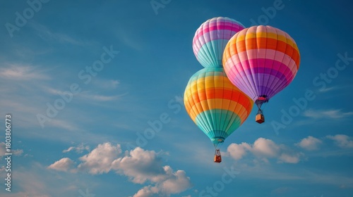 Fototapeta premium Colorful hot air balloons rising in a clear sky during a sunny day,...