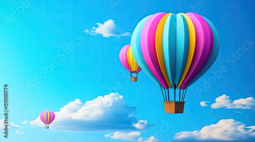 © Jolodong, Fototapeta premium Colorful hot air balloons soar against a vibrant blue sky.