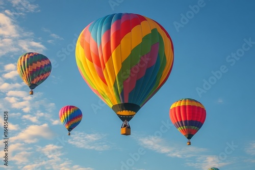Fototapeta premium Colorful hot air balloons soaring in a blue sky during a sunny day