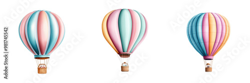 © Purichaya, Naklejka premium Colorful hot air balloons soaring in a bright blue sky, capturing the essence of adventure and joy in a serene landscape.