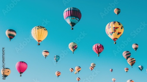 © diracreativa, Fototapeta premium Colorful Hot Air Balloons Soaring in Blue Sky