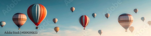 Naklejka premium Colorful Hot Air Balloons Soaring Over a Clear Sky at Dawn