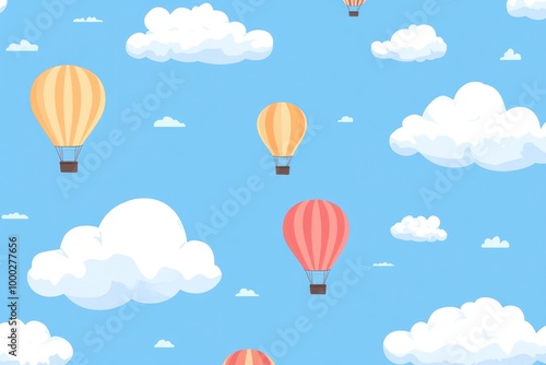 © Lumevia, Fototapeta premium Colorful Hot Air Balloons Soaring Through a Blue Sky with Fluffy Clouds
