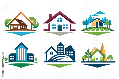 Fototapeta premium Colorful House and Nature Icon Set
