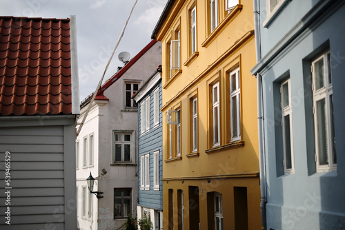 Fototapeta premium Colorful houses and cityscapes built with vernacular architecture in Bergen,...