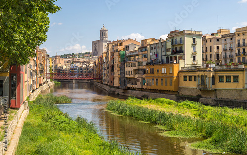 © Sergii Figurnyi, Fototapeta premium Colorful houses and Eiffel bridge in Girona