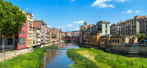 © Sergii Figurnyi, Fototapeta premium Colorful houses and Eiffel bridge in Girona