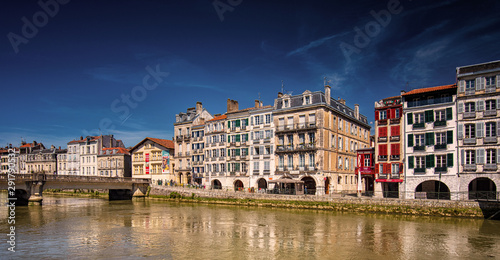 © Horváth Botond, Obraz premium Colorful houses at the Nive river embankment in Bayonne, France