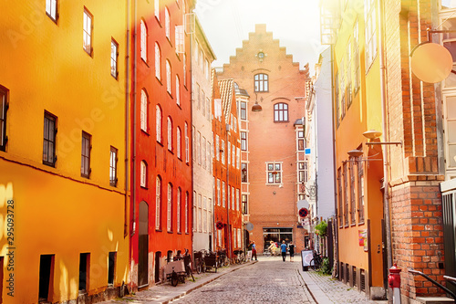Fototapeta premium Colorful houses in the old cozy medieval street of Copenhagen, Denmark.