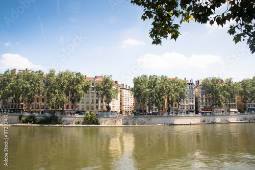 © waldorf27, Naklejka premium Colorful houses on the banks of the Saone river in Lyon, France