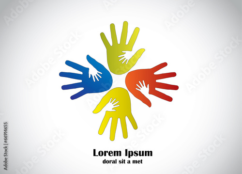 © harishmarnad, Obraz premium colorful human hands support young children hands abstract art