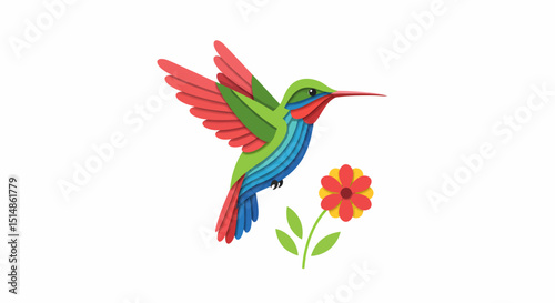 © NadWild, Fototapeta premium Colorful Hummingbird And Flower Natures Delightful Illustration