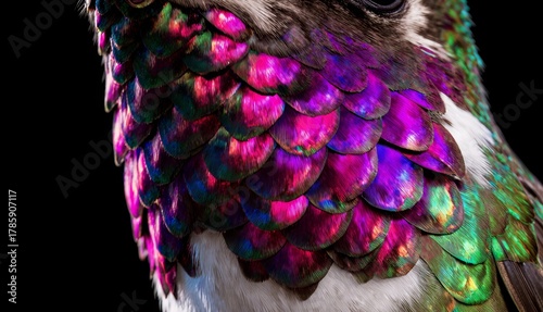 Fototapeta premium Colorful hummingbird displaying vibrant feathers in a striking close-up view