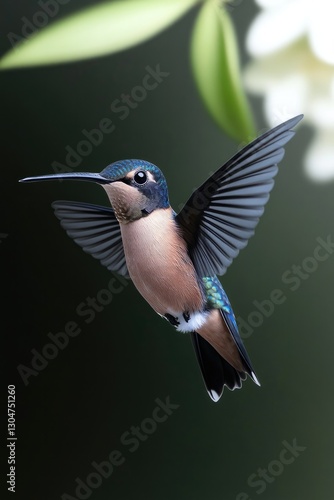 Fototapeta premium Colorful hummingbird flits gracefully among delicate blossoms, s
