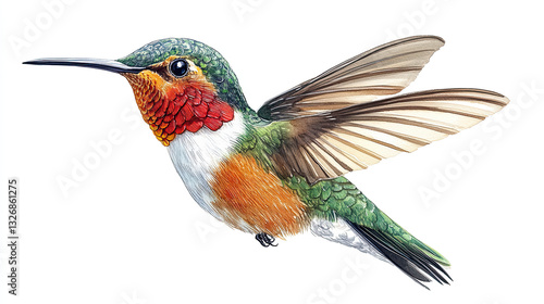Obraz premium Colorful hummingbird illustration hand drawing isolated on white background....