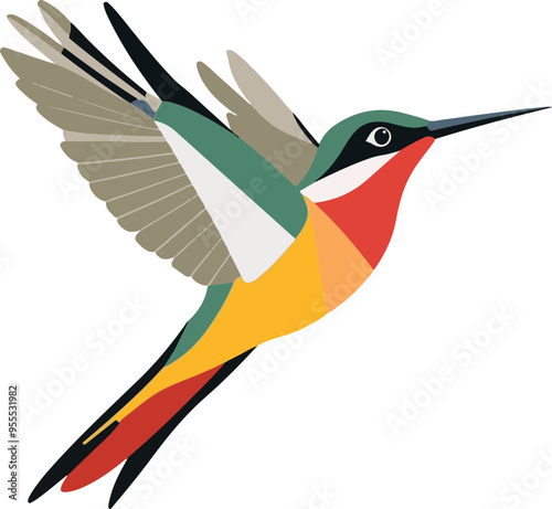 © Jaemie, Fototapeta premium Colorful Hummingbird Illustration in Flight