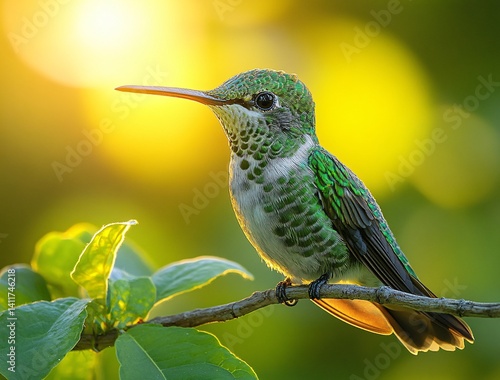 © tunanon, Fototapeta premium Colorful Hummingbird Perched on Branch with Natural Backdrop