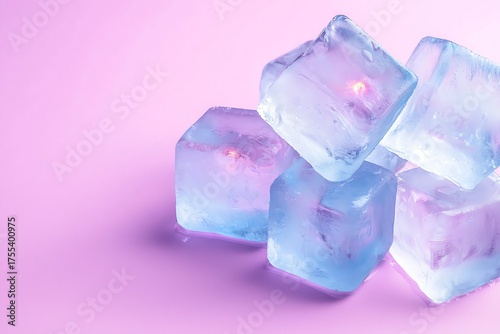 Obraz premium Colorful Ice Cubes with Soft Glow on Pink Background for Creative Design and...
