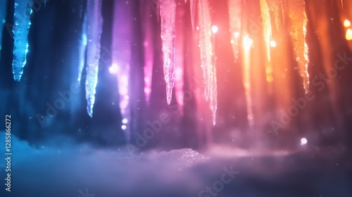 Obraz premium Colorful icicles illuminated by light source, cave setting