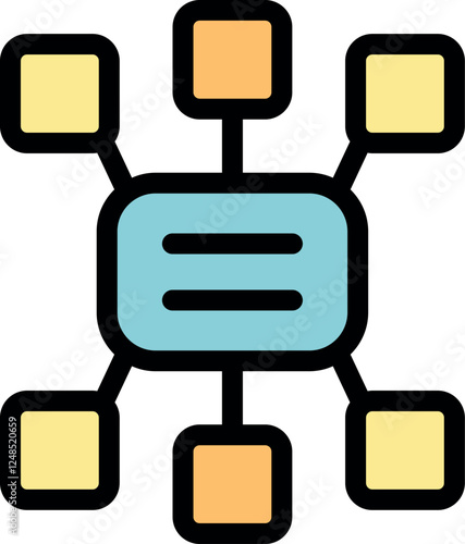 Fototapeta premium Colorful icon representing data integration, connecting various data sources to a central hub for processing and analysis