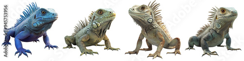 Obraz premium Colorful iguanas showcasing various textures and shades on a white...