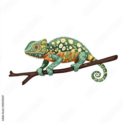 Fototapeta premium Colorful Illustrated Chameleon on a Branch