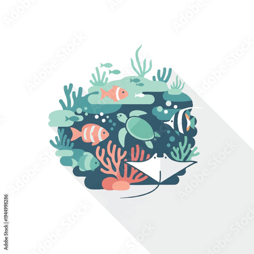 © nunung, Naklejka premium Colorful illustration of coral reef fish.