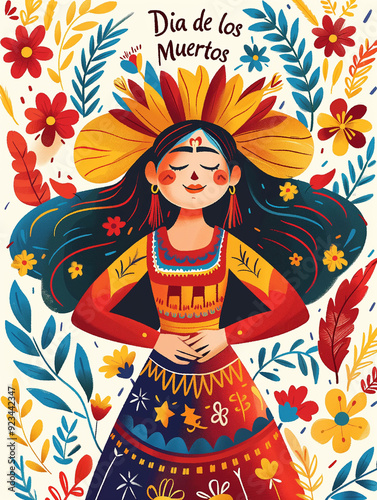 Fototapeta premium Colorful Illustration of Dia de los Muertos Festivities