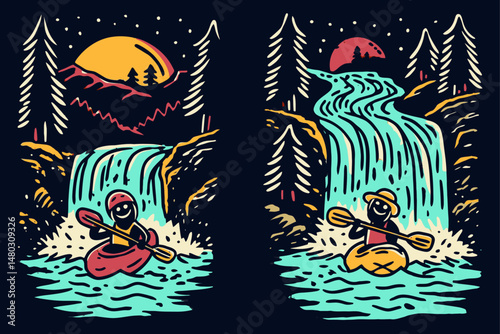 Obraz premium Colorful Illustration of Kayaking Adventure in Nature Setting