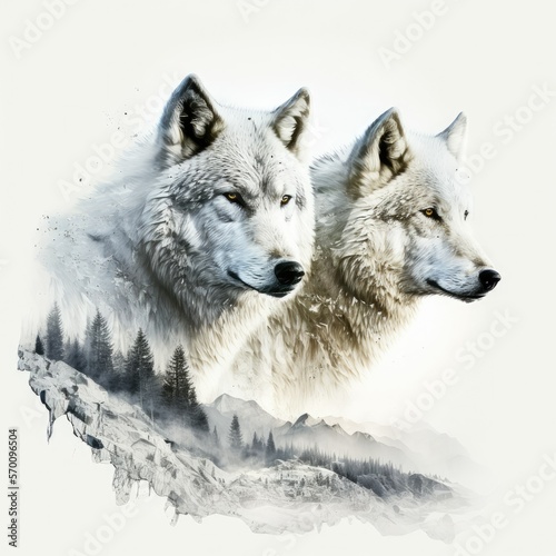 © Purple Penguin GFX, Obraz premium Colorful Illustration, Wolf In Mountains, Generative AI