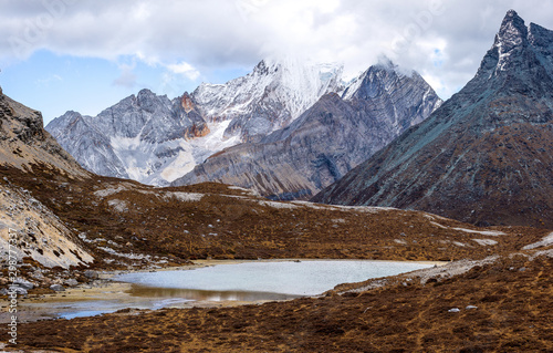 © freedom_naruk, Fototapeta premium Colorful in autumn forest and snow mountain at Yading nature reserve, The last Shangri la