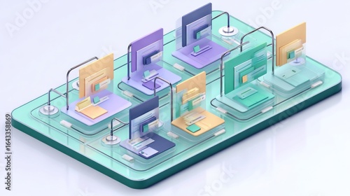 Fototapeta premium Colorful, interconnected graphic elements on a platform