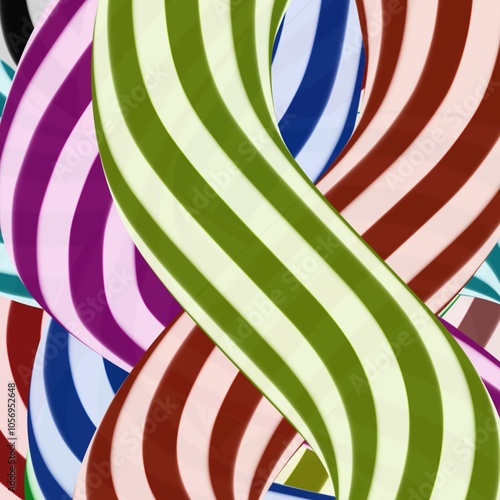 © Samra Siraj, Obraz premium Colorful Interwoven Ribbon Abstract Pattern with Dynamic Movement