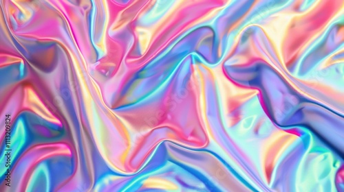 Fototapeta premium Colorful iridescent fabric texture with soft, flowing waves, creating a dreamlike and vibrant backdrop. Perfect for backgrounds and abstract designs.