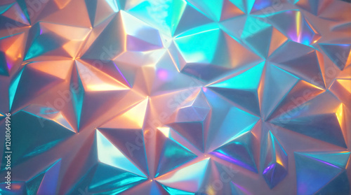 Obraz premium Colorful Iridescent Geometric Pattern with 3D Facets and Light Reflections