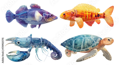 Naklejka premium Colorful Isolated Marine Life Illustrations with Transparent Background