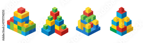 Obraz premium Colorful isometric toy block structures and abstract designs