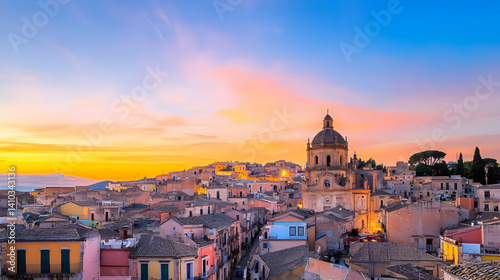 © artzone, Fototapeta premium Colorful Italian Cityscape at Sunrise