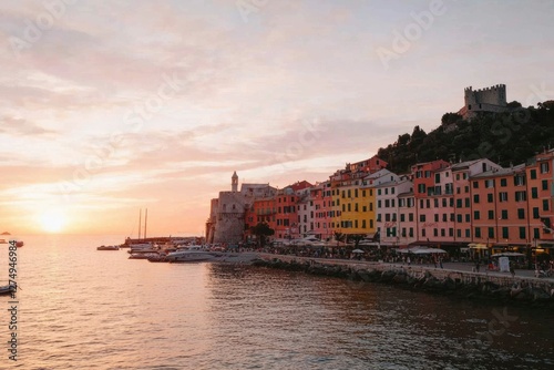 Obraz premium Colorful Italian coastal town at sunset